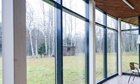 Дом максимально интегрирован в окружающую среду, визуально спрятан в глубине холма. Большая часть стены по периметру – панорамное окно со стеклами, удерживающими тепло. Смотровое окно есть и в потолке, таким образом, сидя у камина, можно любоваться и пробегающими облаками, и вековым лесом.